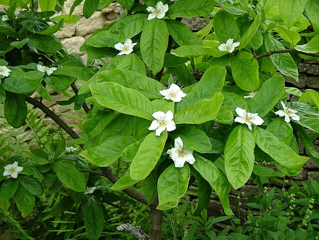 Comme son nom l’indique, sa principale plante hôte est le néflier commun (Mespilus germanica). Mais sa biologie est plus généraliste qu’il n’y paraît. Elle dépose également ses œufs sur d’autres arbustes de la famille des Rosacées, notamment le Poirier (Pyrus communis), le Cognassier (Cydonia oblonga) ou encore le Prunelier (Prunus spinosa). Dans certains milieux, elle peut aussi se développer sur le Fusain d’Europe (Euonymus europaeus).