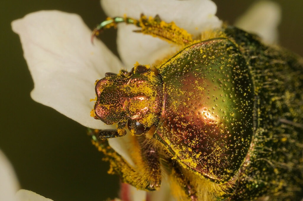 Cétoine dorée recouverte de pollen