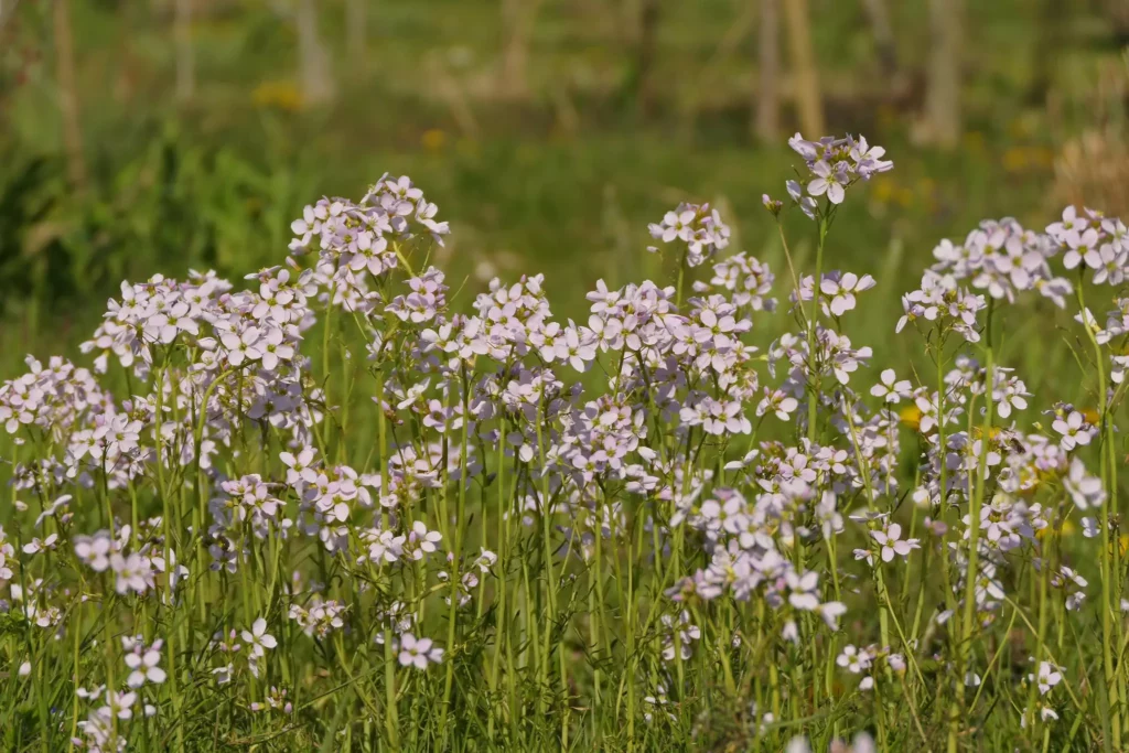 Les plantes hôtes de l’aurore appartiennent principalement à la famille des Brassicacées, que l’on nommait anciennement les Crucifères. L’aurore a une préférence marquée pour la cardamine des prés. Cette plante possède de nombreux noms vernaculaires selon les régions. On l’appelle la cressonnette, le cresson des prés, le faux cresson ou encore la passerage sauvage. Elle porte aussi les noms de bouquet du loup, de petite dentaire ou de Saint-Georges. Ce dernier nom lui est donné car la Saint-Georges se fête le 23 avril. À ce moment-là, la cardamine des prés est en pleine floraison.