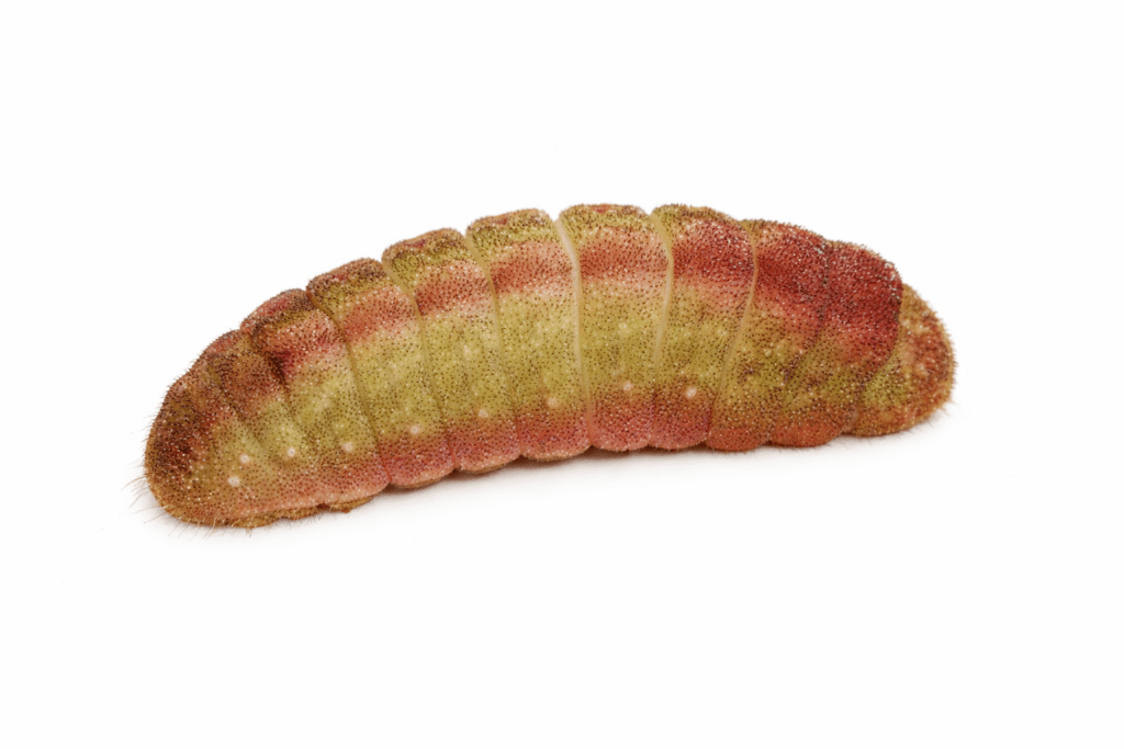 La chenille de l’Azuré des nerpruns possède une silhouette très particulière que les entomologistes qualifient de limaciforme. Ce terme signifie que son corps adopte une forme compacte, ramassée et légèrement bombée, ce qui lui confère une ressemblance frappante avec une petite limace. Contrairement à de nombreuses larves de lépidoptères, son dos est nettement arqué tandis que sa face ventrale reste totalement plane. Cette structure lui permet de s’appliquer étroitement contre la surface des boutons floraux pour optimiser son camouflage.