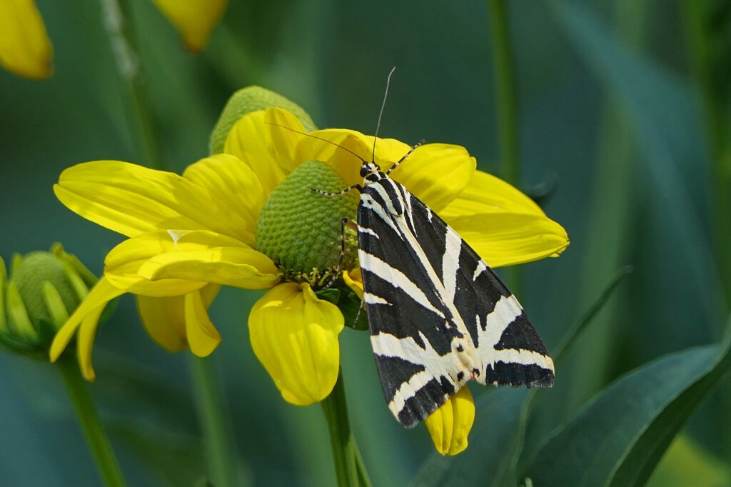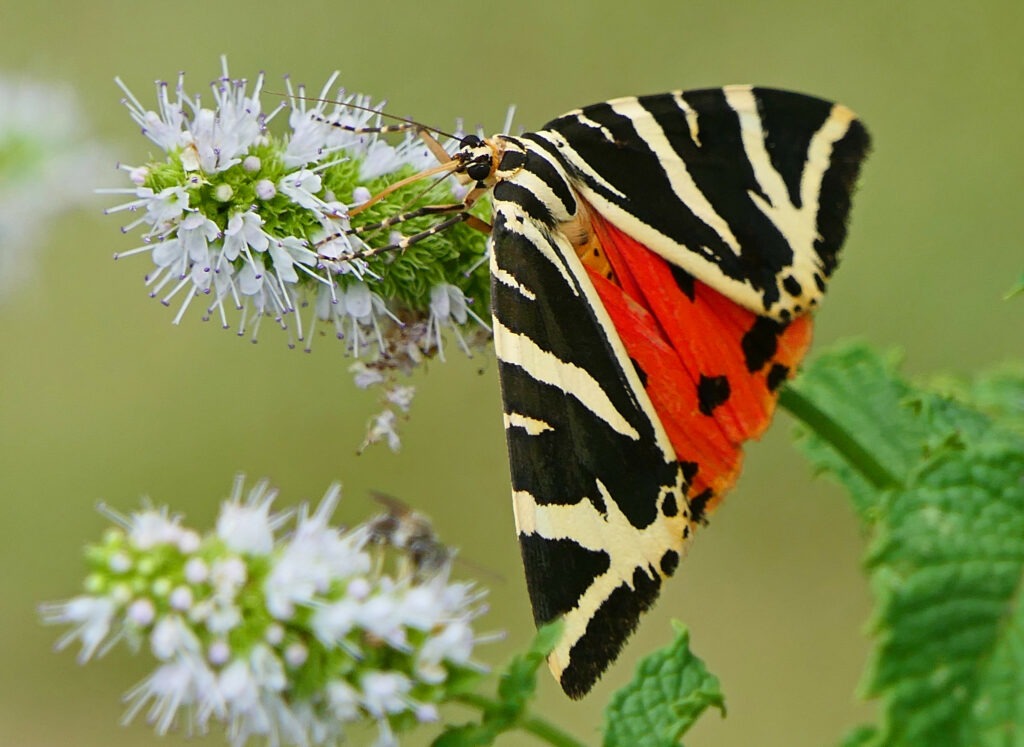 Bien que classée parmi les papillons nocturnes, l’Écaille chinée est fréquemment active en plein jour, notamment lors des fortes chaleurs estivales.