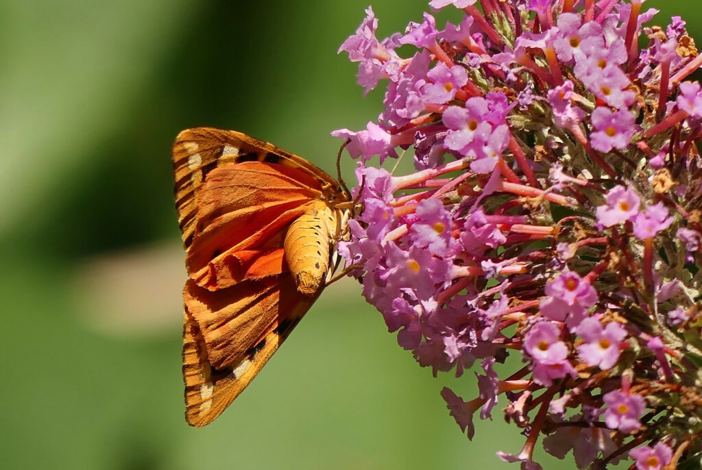 Depuis, la bouture s’est multipliée et j’ai planté des eupatoires un peu partout au jardin des oiseaux. Par expérience, j’ai remarqué que celles qui se trouvaient dans une lumière légèrement ombragée attiraient plus les écailles chinées que celles qui étaient en plein soleil.