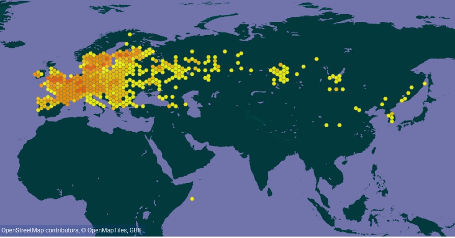 Son aire de distribution se prolonge largement vers l’est à travers la Russie et la Sibérie. Elle atteint l’Extrême-Orient asiatique, avec des populations en Corée et dans le nord-est de la Chine. Cette large extension traduit son adaptation aux milieux tempérés, en particulier aux paysages bocagers et aux zones riches en arbustes du genre Prunus.