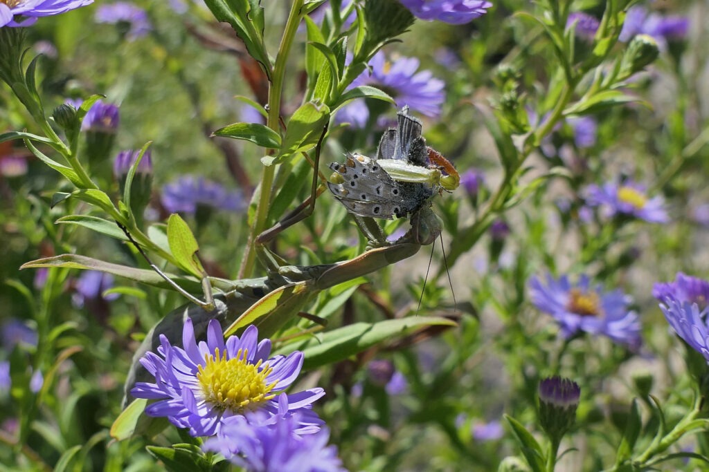 Les insectes parasites représentent une menace plus discrète mais redoutable. Des petites guêpes et des mouches (les tachinaires) pondent leurs œufs directement dans le corps des chenilles ou sur les feuilles qu’elles consomment. Les larves se développent alors à l’intérieur de la chenille, finissant par la tuer avant ou pendant la nymphose. Il n’est pas rare de voir une chrysalide dont le développement s’arrête brutalement à cause de ce parasitisme.