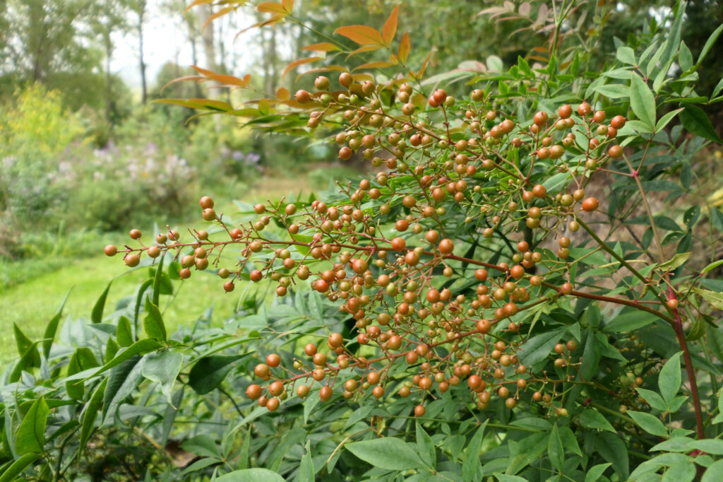 Il faut se méfier des baies du Nandina ou Bambou sacré. Très appétissantes quand on les voit, elles contiennent tout de même du cyanure et d’autres alcaloïdes très nocifs pour les humains et d’autres animaux. Seuls les oiseaux frugivores peuvent les consommer sans risque à condition de ne pas s’en gaver . Ceux-ci les consomment en fin d’hiver lorsque toutes les autres nourritures ont disparu.